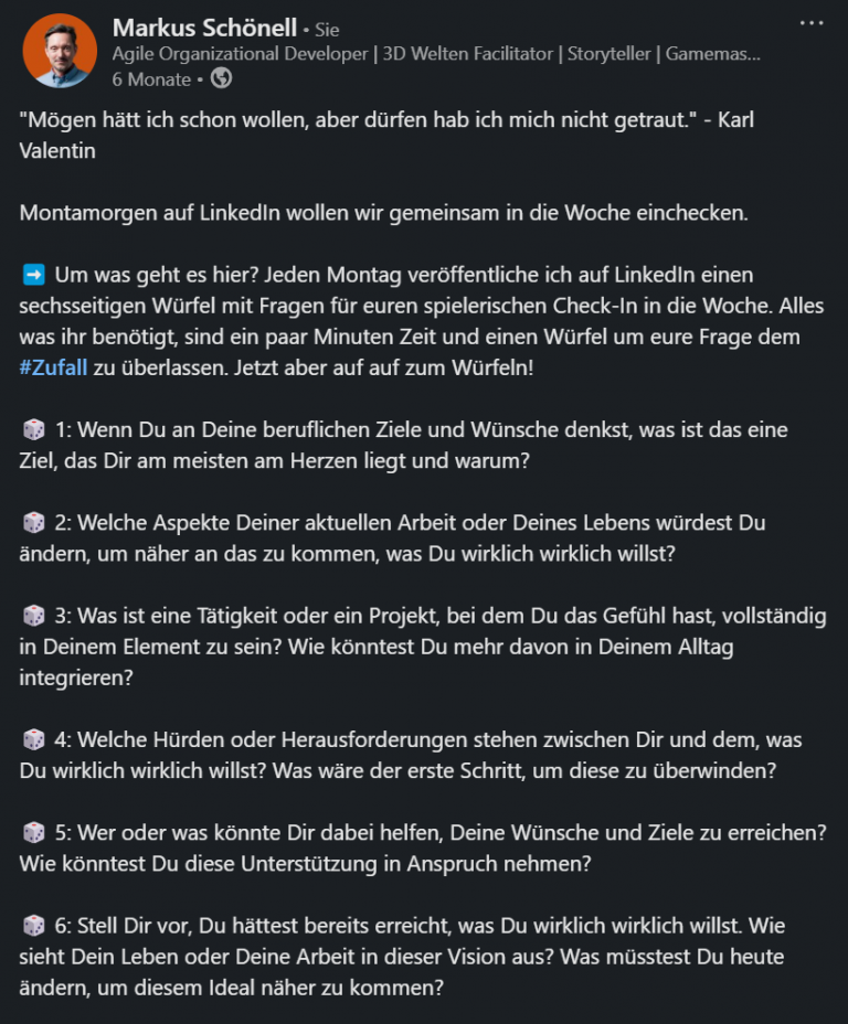 Jeden Montag ein neuer 1W6 Check-In auf meinem profil